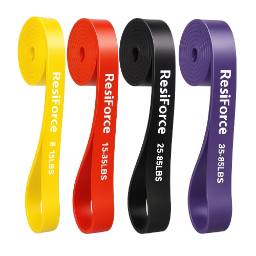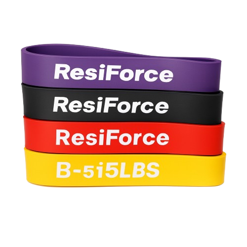 The ResiForce Pro Pack is built for serious fitness enthusiasts. With four bands (black, yellow, red, purple), this set offers a wide range of resistance levels for diverse workouts. Made from high-quality, durable materials, it’s suitable for both beginners and advanced users, perfect for home or gym use.